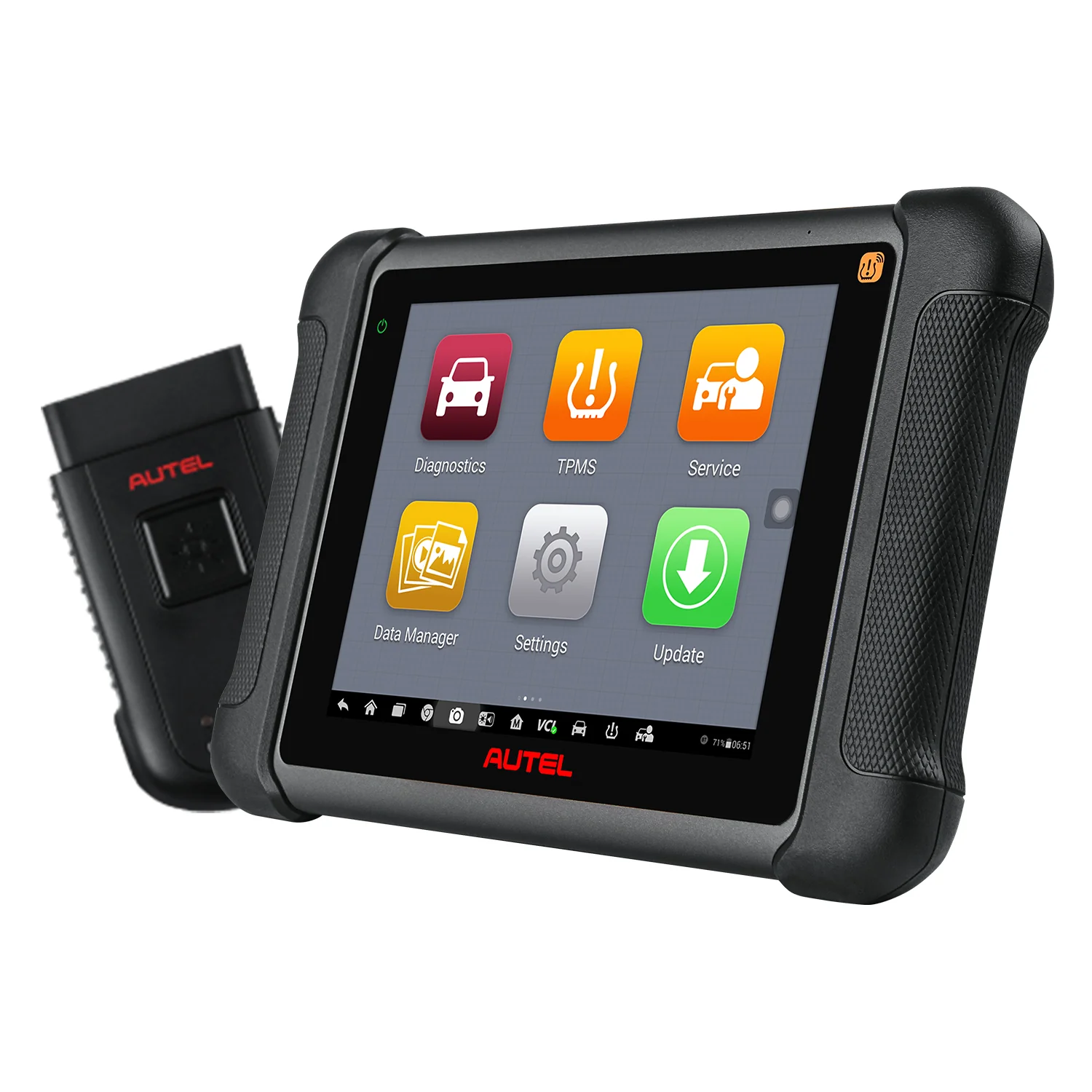 MaxiSys MS906TS is the latest addition to the MaxiSys product line of advanced wireless diagnostic devices integrated with the TPMS antenna module. The device is based on the Android operating system featured with the best possible coverage of OE-level diagnostics and TPMS integration. Utilizing the powerful Exynos 5260 6-core processor, an 8” capacitive HD touch screen, the MaxiSys MS906TS efficiently provides comprehensive vehicle diagnostics and analysis along with universal TPMS solutions.